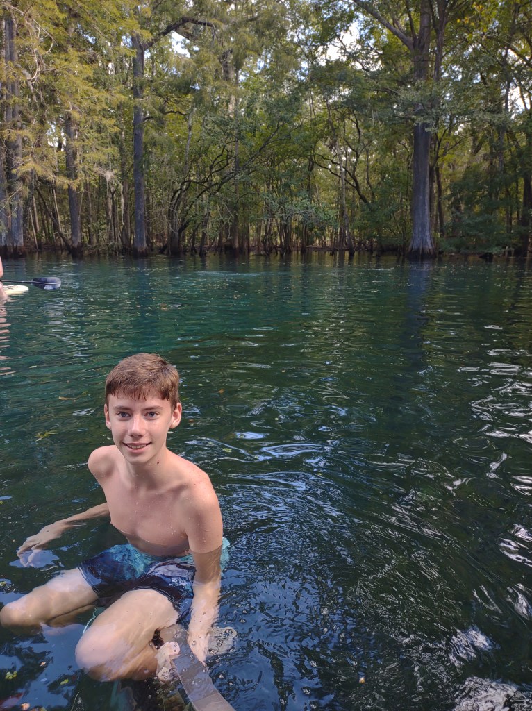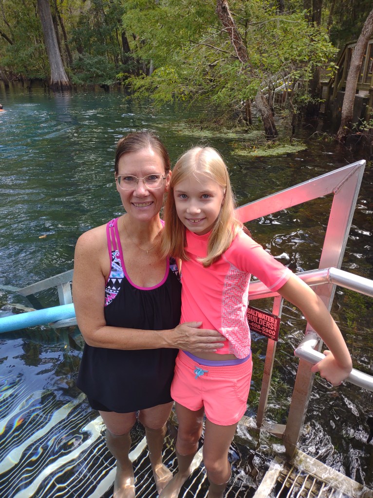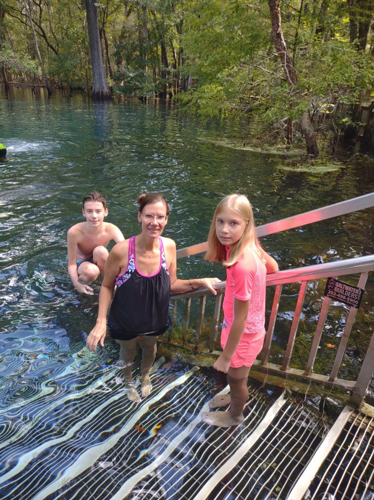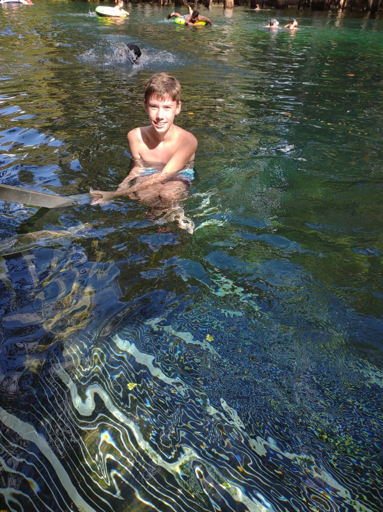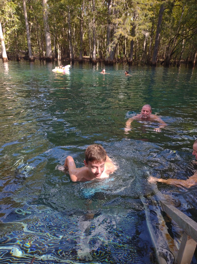 There were plenty of other people who had the same thoughts as we did, although it wasn’t overly crowded. We joined them on the steps to enter the spring. 💧 Some people chose to rip off the band-aid and dive in off the steps. Yeah, not me, lol. Joe and Luke were the first to take the plunge. Now, you’d think 72 degree water is warm, right? Well, it didn’t feel that way at first, haha. Juliana and I took it one step at a time and gradually made our way into the water. 🤽♀️