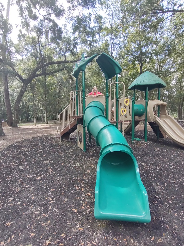 After we had our fill of floating around and swimming, we thought we’d go for a walk. The paths led into a wooded area that was so beautiful. We walked along Cypress trees, huge saw palmettoes, deer tracks, and a few mosquitoes decided to join us. On our way to the playground, we met some scuba divers that told us all about the underwater caves that connect the springs. It was pretty cool! 🤿