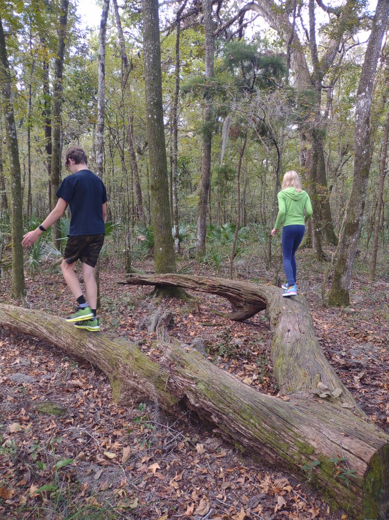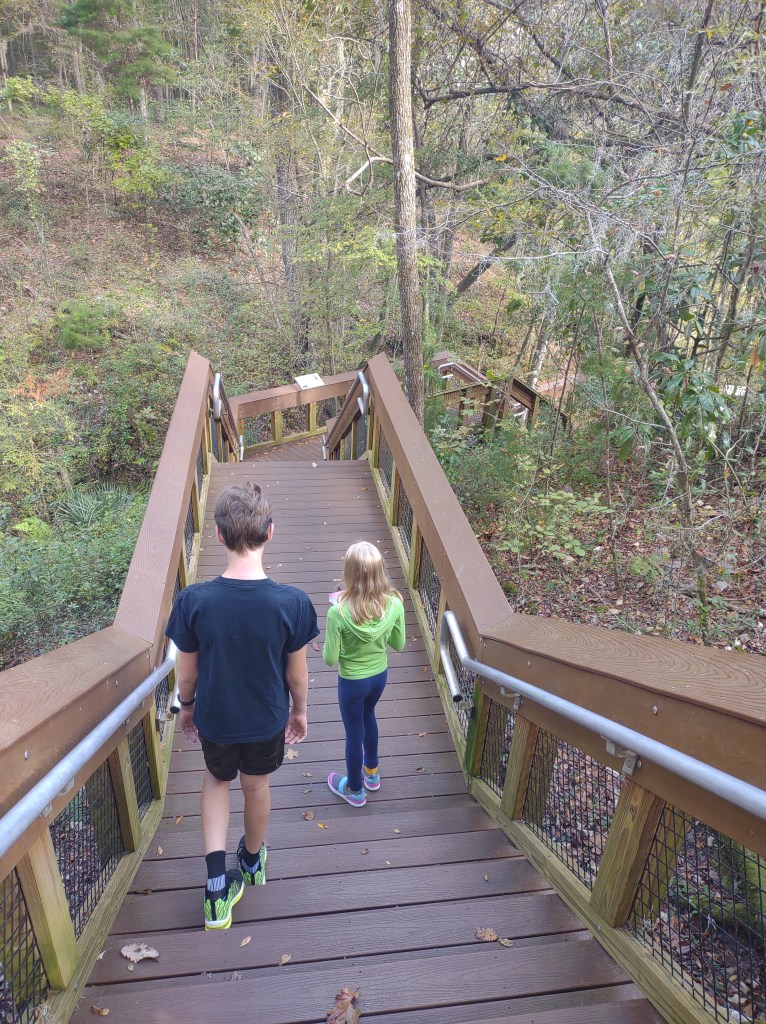 Located in northern Gainesville, this is one of the smaller state parks we’ve been to. Although the park is small, it is quite lovely and the staff was kind and courteous. One of the volunteers was so sweet and gave Juliana an adorable stuffed animal she had made. ๐งธ I’ve got to tell you, I was seriously wondering about how the park got the name. Quite frankly, I wasn’t sure exactly what a millhopper was. A bit of research later I learned a millhopper is a funnel-shaped container that holds the grain before it gets released into the mill stones. That makes sense, but why Devil’s Millhopper??? I mean that’s a creepy name, right? Well, according to Wikipedia, “The sinkhole got its name from its similar appearance to the hopper of a mill, along with the bones found at the bottom, suggesting animals entered it on the way to meeting the devil.” Yep, still creepy! ๐