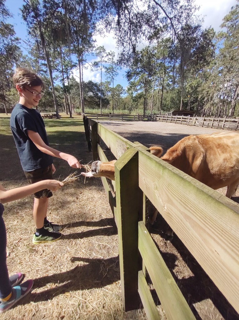 The animals are also a fun part of the Nature Center. There were cows, pigs, sheep and chickens which were the breeds that would have been accurate for a farm in Florida in the 1800’s. ๐ฎ๐ท๐๐ Now, if you had told me that I would have been licked by a cow that morning, I wouldn’t have believed you, but it happened! ๐ณ These sweet ladies loved eating the hay we fed them and licked all of our hands. It was pretty cool! The tongues felt like cat tongues, but a lot bigger!!! We were able to pet them behind their ears and appreciated their affectionate nature. Their gentle eyes were so beautiful. ๐ฅฐ