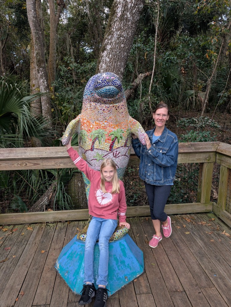 To our surprise, on the day we went, there were over 531 manatees in the warm spring water. Since the water is a constant 72 degrees coming out of the springs, when other bodies of water get too cold, the manatees seek the warmer water of the springs. Blue Spring State Park is located near Orange City, Florida and about 102 million gallons of water flows out of the springs every day. According to bluespringadventures.com, “In 1972 Blue Spring became a State Park with the help of Jacques Cousteau after he filmed the episode called The Forgotten Mermaids.” In order to protect the manatees, the park made many improvements and the number of manatees has grown from 14 tracked in 1970 to 729 tracked in 2023!