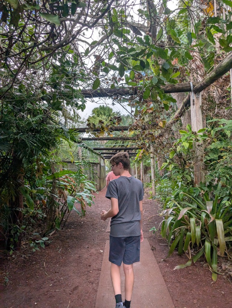 There were various regions in the park where trees and fruit grew, each one according to the area where they originated from. One of our favorites was the Australian region and seeing the Rainbow Eucalyptus tree. The Japenese region had some really cool trees that we were excited to see matched what we grow at home such as the loquat, fig, mulberry, and bamboo. The African region had a really cool Boabab tree. Some other trees we liked were the breadfruit (the kids enjoyed sticking the leaves to their clothes), coconut, and Japanese Raisin (we plan on trying to locate one to grow at home!).