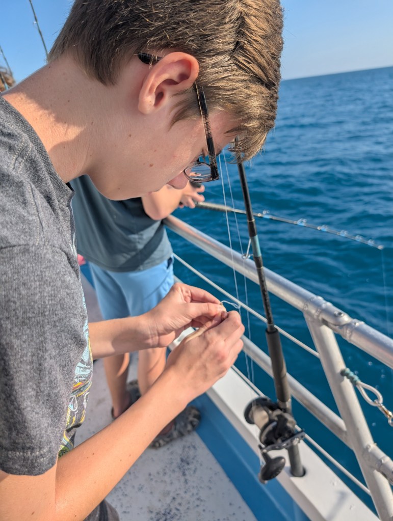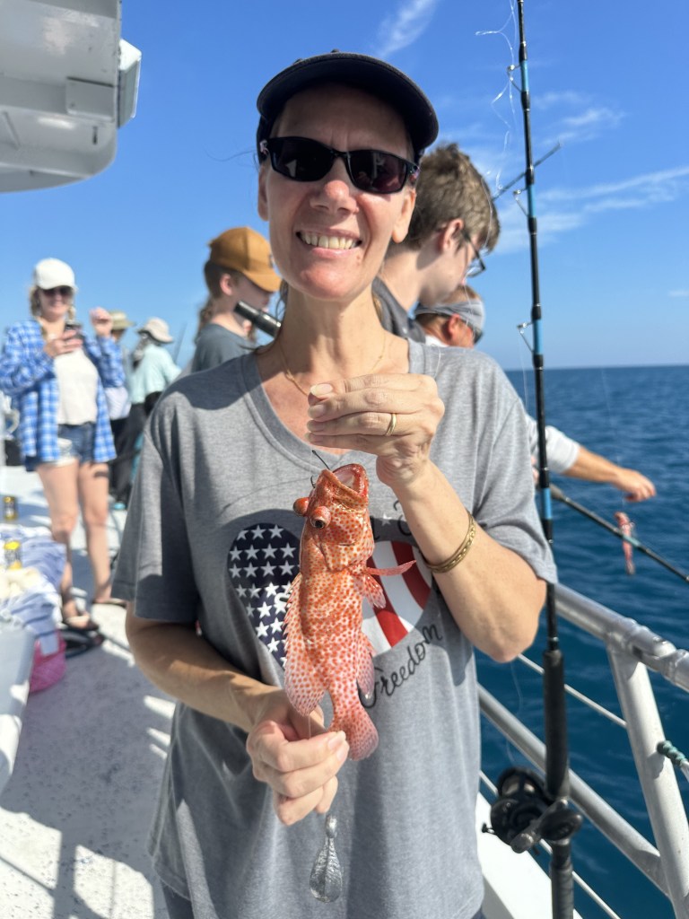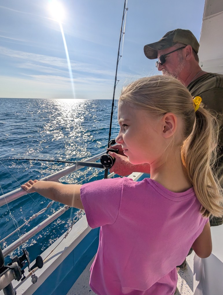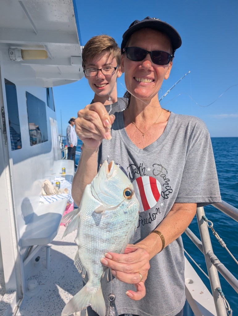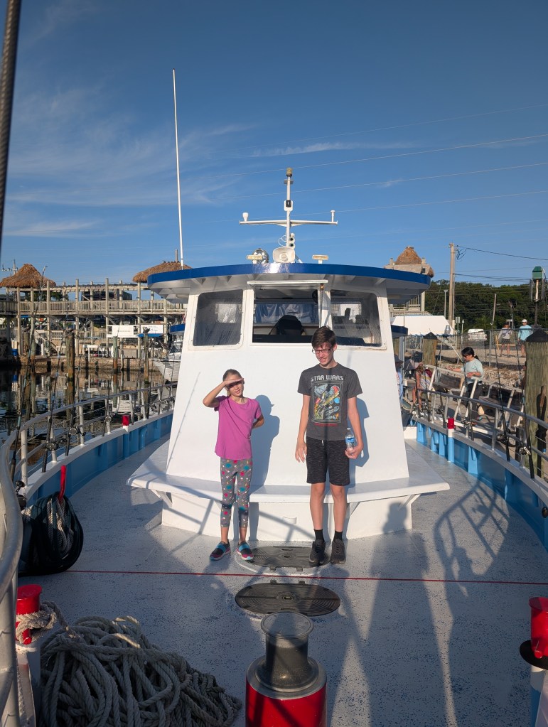 We’ve always wanted to go on an ocean fishing charter boat. The weather looked great, so we decided to go for it. Joe looked online and found a really nice and reasonably priced charter that we could all go on for half a day reef fishing trip. 🎣