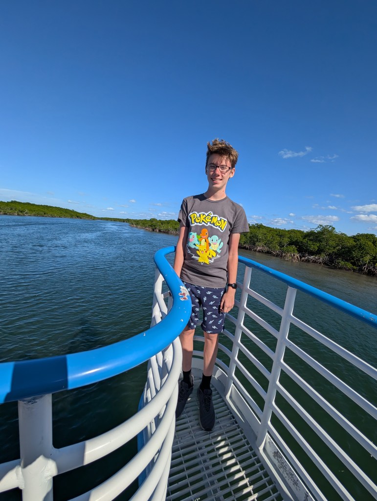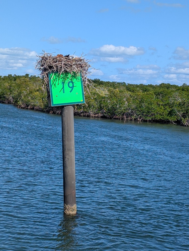 On the ride back to the park, we decided to sit on the top level and wander around on the outside of the boat. We had a wonderful view of the scenery. There were 2 osprey nests that we got to see, and one of them had the momma and her chicks in the nest. So cool! 🪺