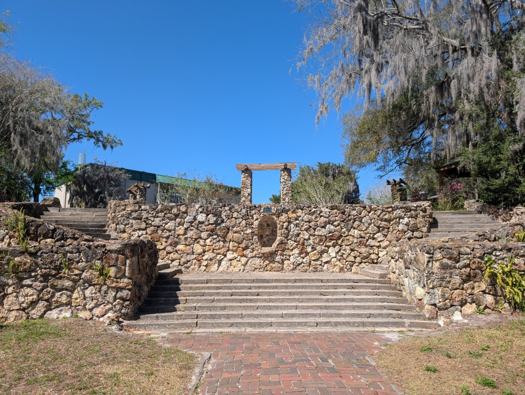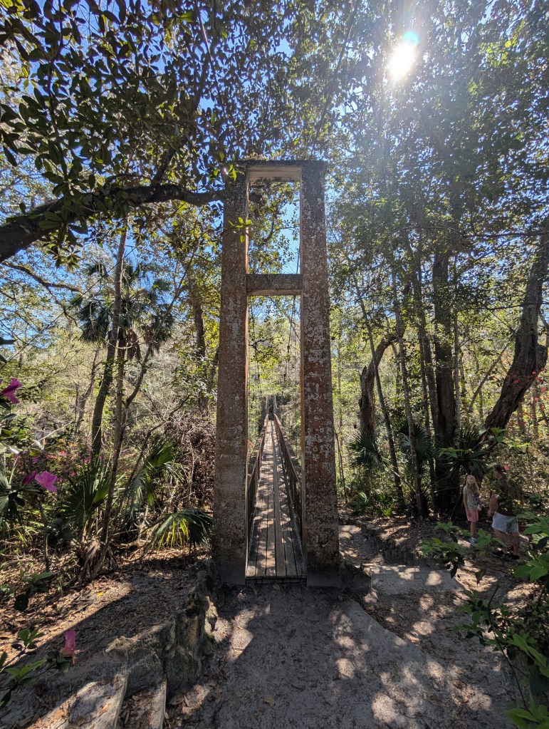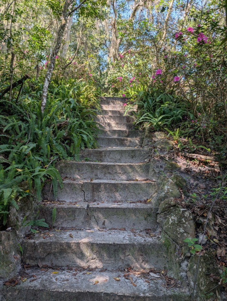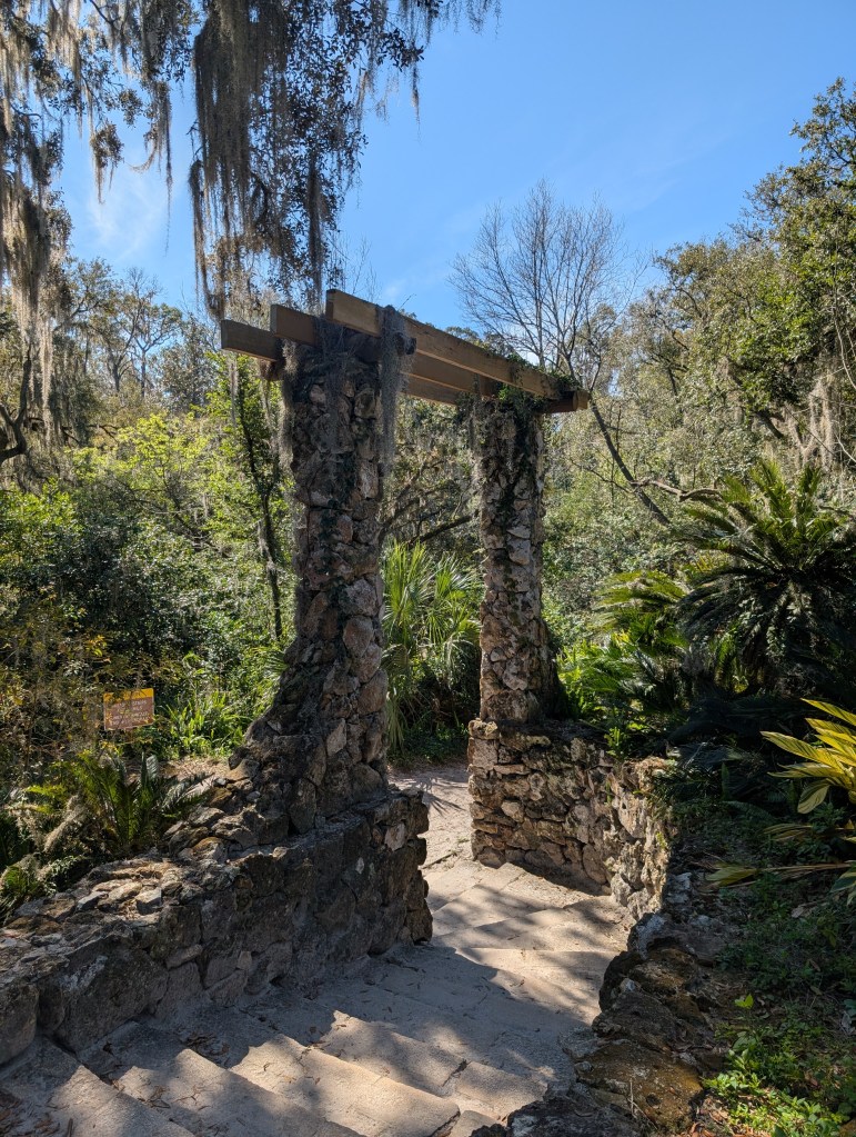If you’re surprised to find a state park in a city, believe me, so were we! The park was actually part of the New Deal era to help Palatka recover from the Great Depression. According to https://www.floridastateparks.org/learn/historic-gardens-and-court-states, “Local paving contractor Thomas Byrd Gillespie saw what he described as a “prosperous community transformed by a depression into a section having many actually hungry and in dire distress.” He recognized that tourism was becoming an important economic force in Florida, noting that that several parts of Florida were attracting hundreds of visitors where they “had something worthwhile for them to stop and see.” Out of this observation, the concept of Ravine Gardens was formed. The gardens were officially opened on July 4, 1933. At the time over 270,000 plants were planted in the formal gardens and along the slopes of the ravines.”