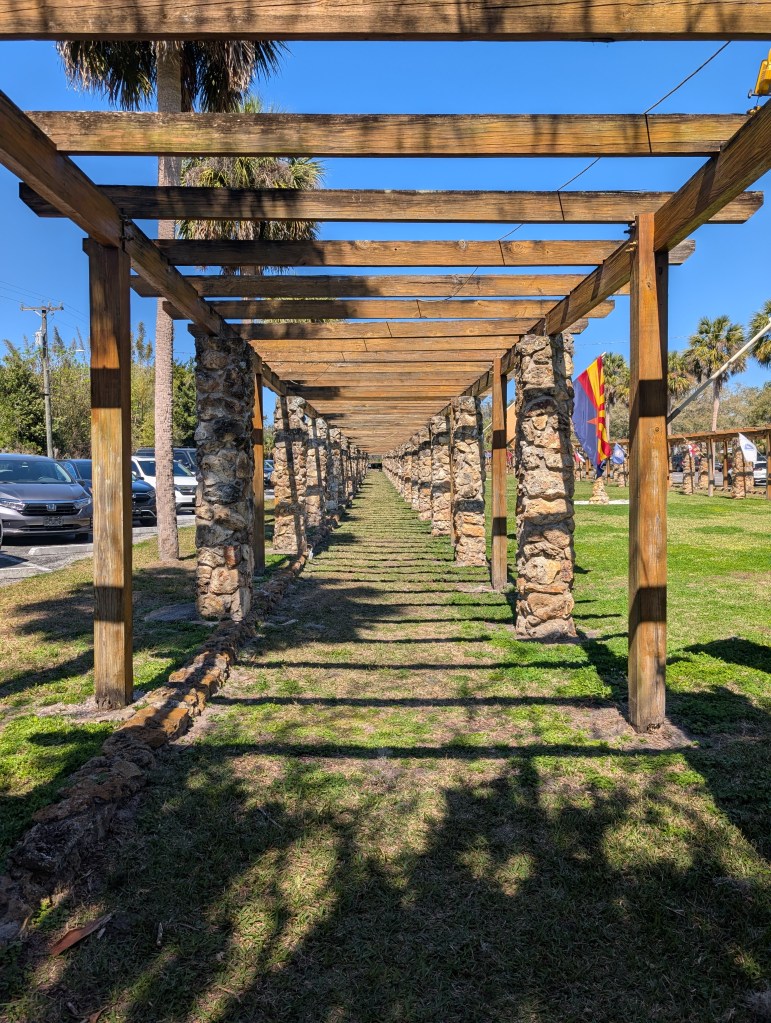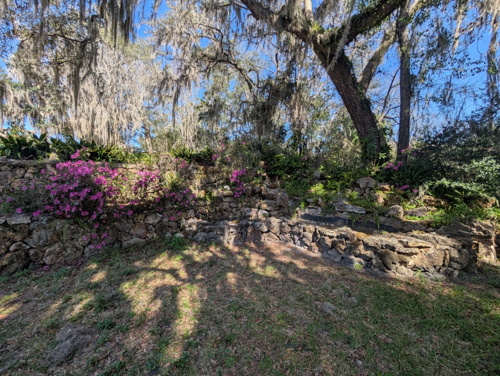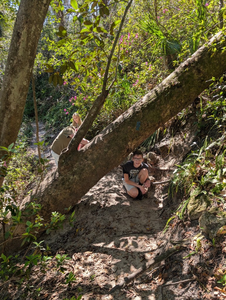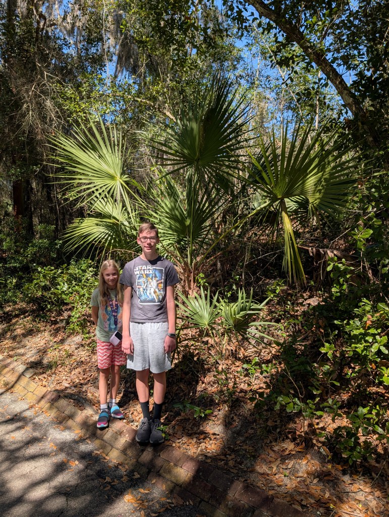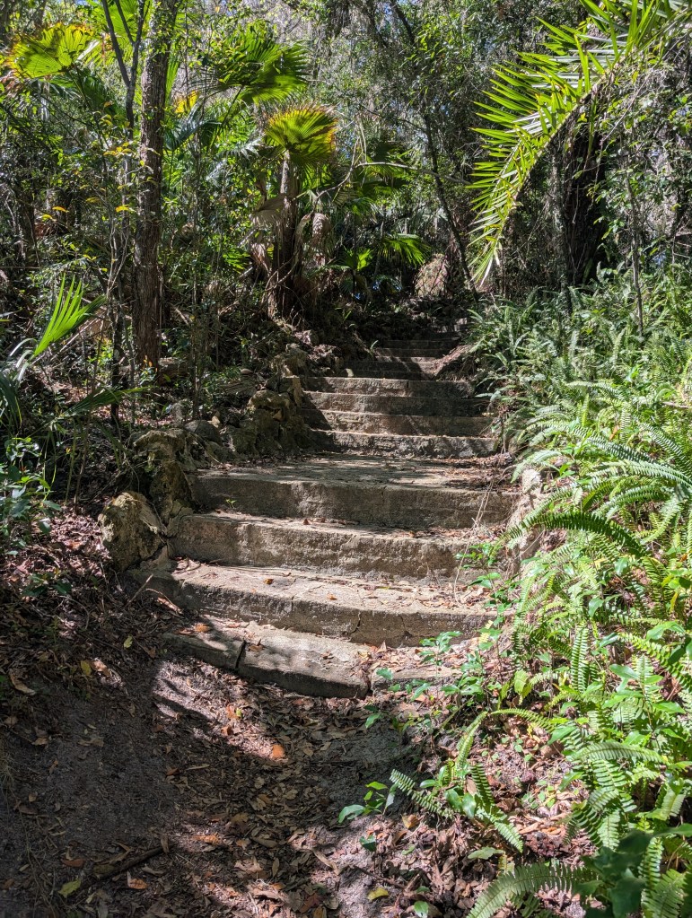 If you’re surprised to find a state park in a city, believe me, so were we! The park was actually part of the New Deal era to help Palatka recover from the Great Depression. According to https://www.floridastateparks.org/learn/historic-gardens-and-court-states, “Local paving contractor Thomas Byrd Gillespie saw what he described as a “prosperous community transformed by a depression into a section having many actually hungry and in dire distress.” He recognized that tourism was becoming an important economic force in Florida, noting that that several parts of Florida were attracting hundreds of visitors where they “had something worthwhile for them to stop and see.” Out of this observation, the concept of Ravine Gardens was formed. The gardens were officially opened on July 4, 1933. At the time over 270,000 plants were planted in the formal gardens and along the slopes of the ravines.”