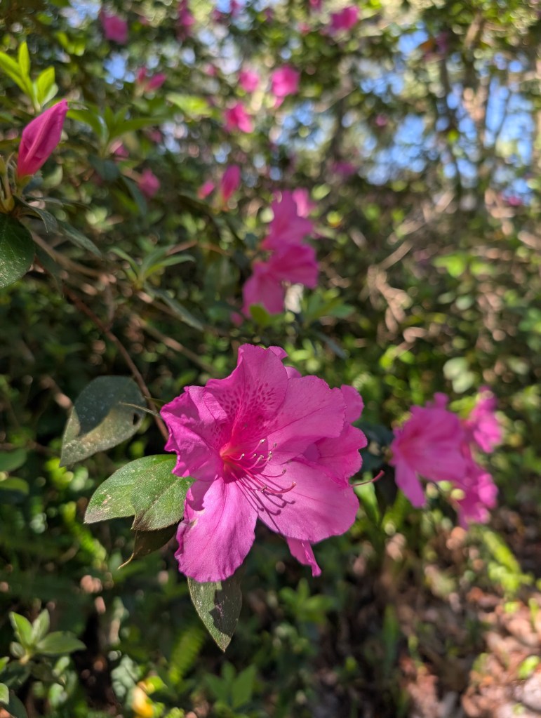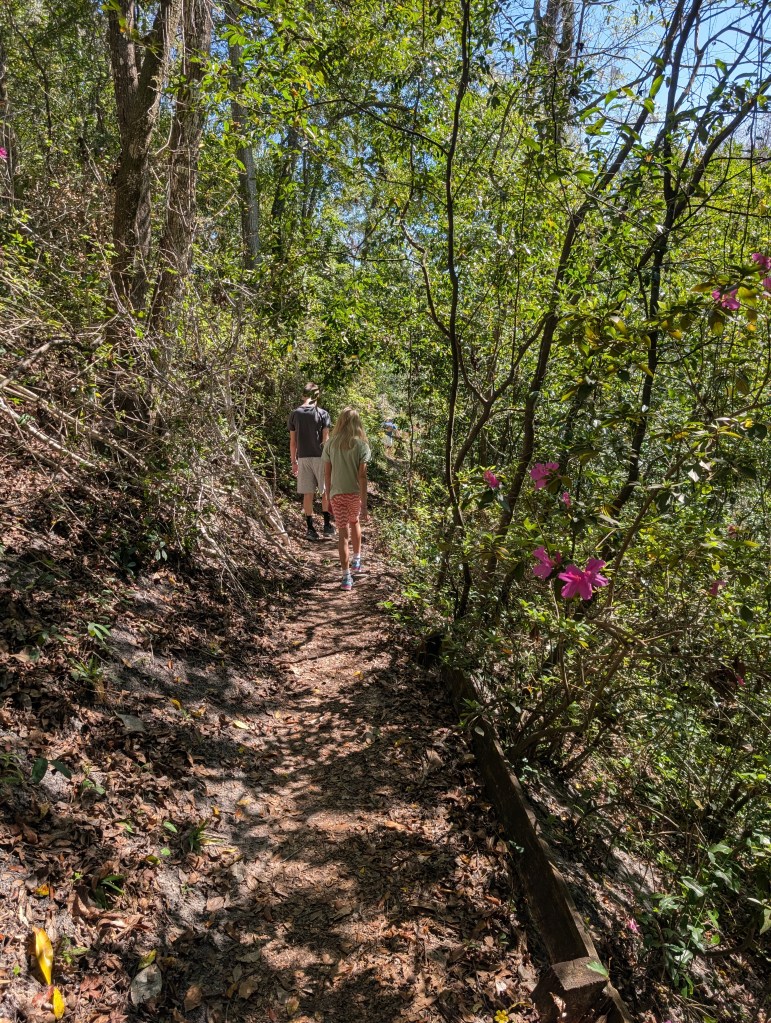 Not going to lie, the Azalea Trail is our favorite! Are the paths perfectly groomed? No. Are there roots to step over? Yes. Do you have to watch where you’re walking? Yep! Is it worth it? You bet! The azaleas were in bloom and we loved exploring everywhere the trails led. Some of the trail areas were closed when we visited, but we thoroughly enjoyed the parts that were still open.