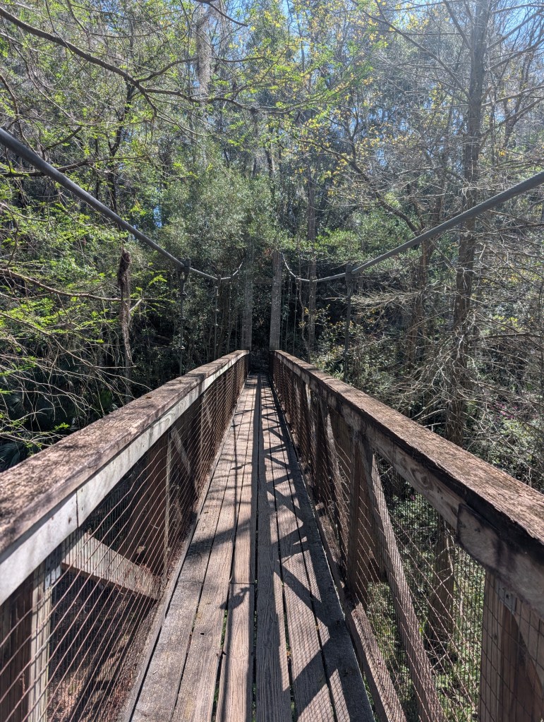 There are 2 different loops to walk on. There is a 1.8 mile paved loop that is an easier walk through the bottom of the ravine. There is also the Azalea Trail, which is 2.5 miles long and meanders through the park with varying levels of difficulty. Although this trail is more rugged, you can enjoy crossing over swinging bridges, climbing old stone staircases, and getting an up close and personal view of the beautiful flowers in bloom. Here is a link to the brochure to help you find your way through the park: https://www.floridastateparks.org/sites/default/files/media/file/rav-brochure.pdf
