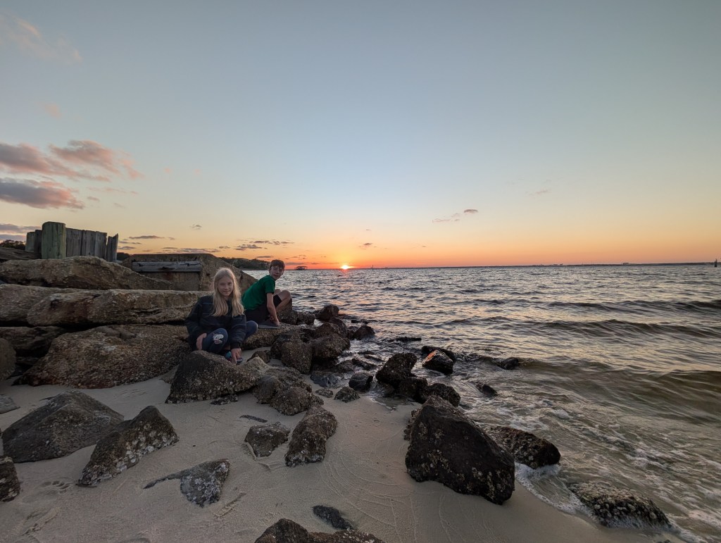 Seriously, this was absolutely one of our best days ever! After a quiet dinner, we walked to a beach area close to our hotel. We had a great time soaking up the last of the sun’s rays and watching the beautiful sunset over the gulf. 🌅