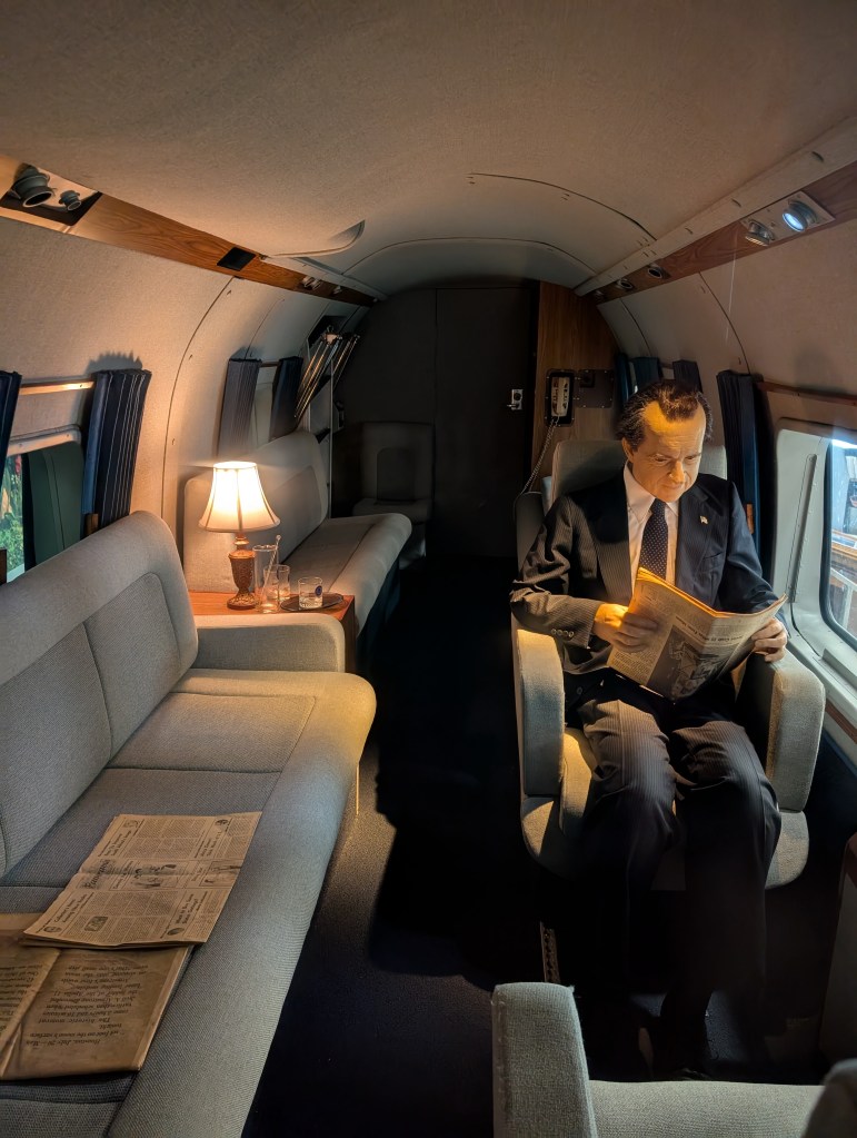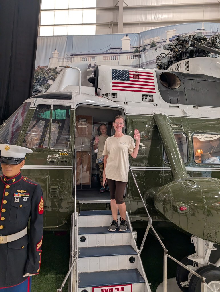 Here’s some info from the NNAM website about the VH-3A Sea King: “Delivered to the fleet in 1962, the VH-3A on display served in the Executive Flight Detachment of Marine Helicopter Squadron (HMX) 1 during the presidencies of Richard M. Nixon and Gerald R. Ford. No single helicopter is called “Marine One,” with any one of HMX-1’s aircraft assuming that name when the President is on board. The white top portion of the familiar paint scheme on board “Marine One” originally appeared in an effort to make the aircraft cooler for its passengers prior to the availability of air-conditioned compartments.” 🤯