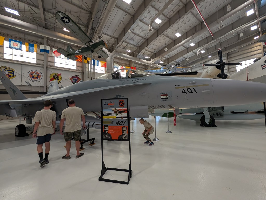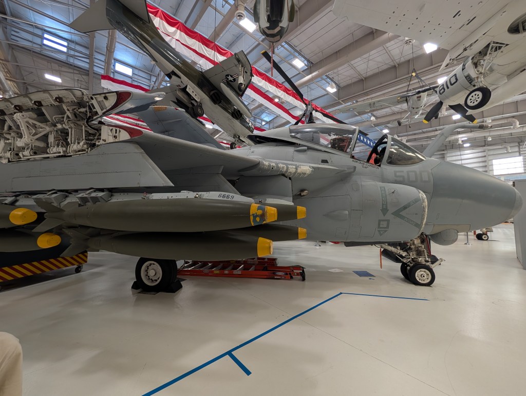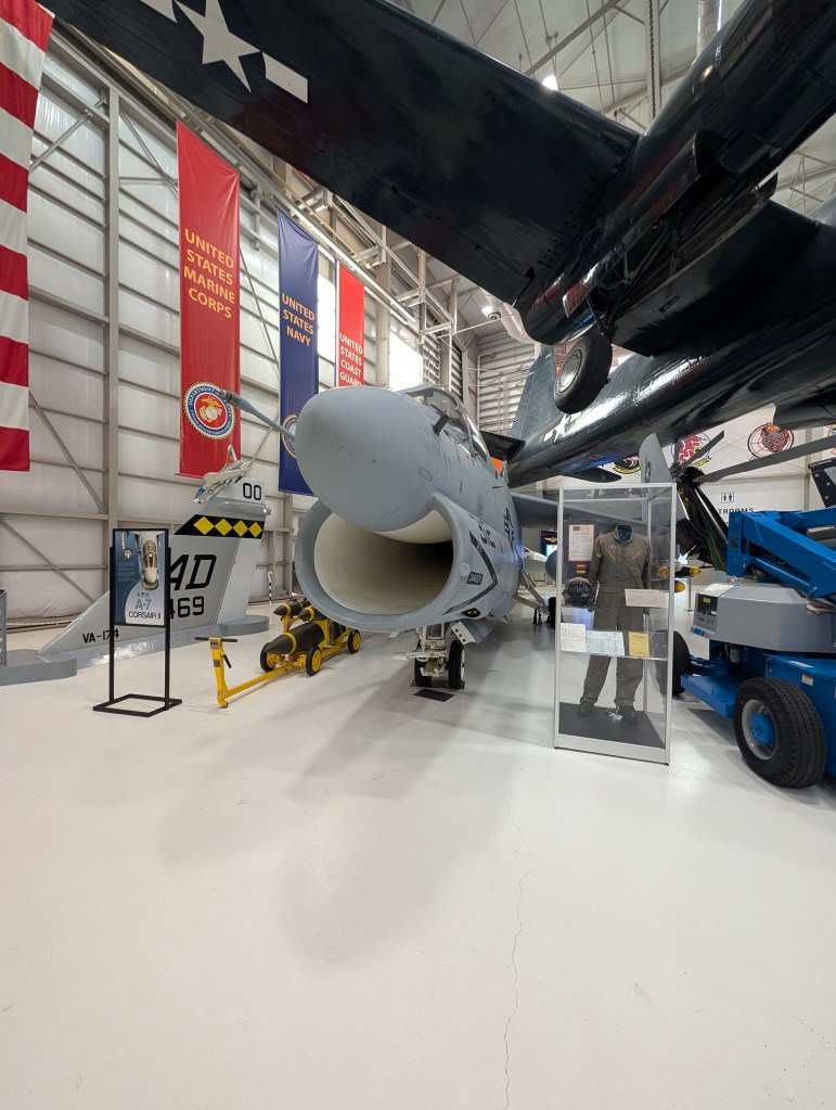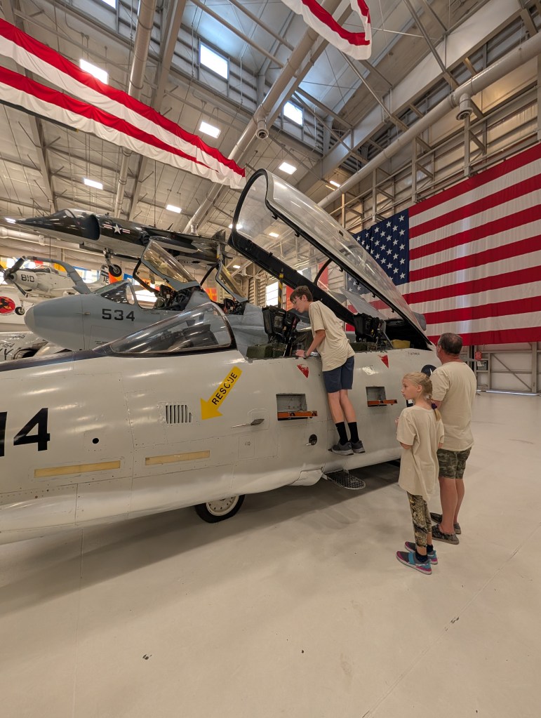 If you decide to go to the NNAM, I would highly suggest you make a visit to Hangar Bay 1 which is right next to it. We thought is was amazing! They have a Tomcat, Hawkeye, Intruder, and so many more! It was so cool! We also had the pleasure of meeting Mr. Patrick Cobb (my apologies that I don’t recall his title and rank) who was an electrician and served during Vietnam. He was so nice and showed us the wiring in the wings. Here he is with the A-6 Intruder he worked on followed by more aircraft we enjoyed seeing.