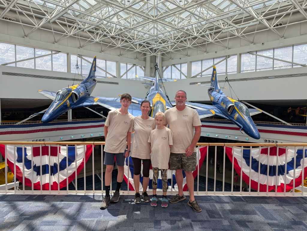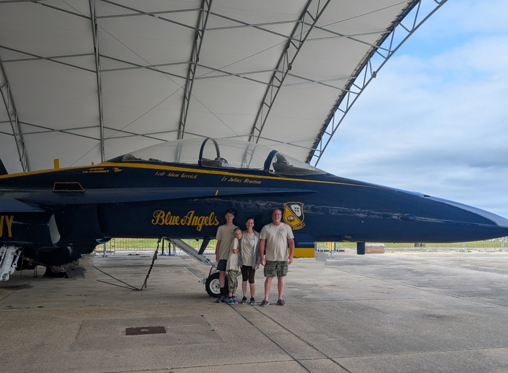 Another tidbit of info, there is a gift shop on site where the Blue Angels did their show. You can also purchase the same merchandise in the museum gift shop. We went to both to find our treasures. Things can be a bit pricey, but since the admission to the show and museum is completely free, we felt justified paying the prices. I found an amazing Blue Angels T-shirt, Juliana got a camo teddy bear with a Blue Angels shirt on it, and Luke needed some really cool airplane pens. ✈️