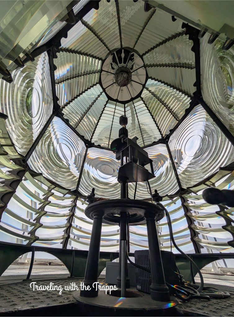 The beautiful Pensacola Lighthouse in Pensacola, Florida has a unique and fascinating history! The original 40 ft. tower was completed and lit in 1824. Due to trees near the lighthouse and also on Santa Rosa Island, the light was difficult for ships to see, so a new light was requested. The new 150 ft. tall brick tower was finished in 1859 and housed a first order Fresnel lens. In 1861 during the Civil War, the Confederates seized the tower. They took the first order Fresnel lens with them when they left the area in 1862. The Union then gained control and installed a fourth order lens to bring the lighthouse back into service in December 1862. Thankfully in 1869 the original first order lens was recovered and put back in the tower where it belonged. 😉