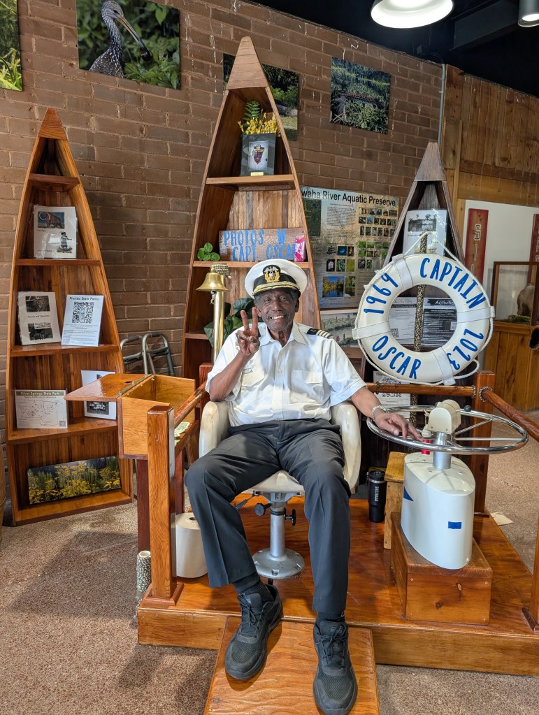 After we paid for admission and bought our boat tour tickets, we decided to go into the Discovery Center until it was time for the boat tour. We were so excited to see one of the costumes from the Creature of the Black Lagoon!!! It was a pleasure to meet Captain Oscar! Captain Oscar was the lead boat tour captain and has worked for the park for over 50 years. There were also some interesting displays and a few fun snakes! 🐍