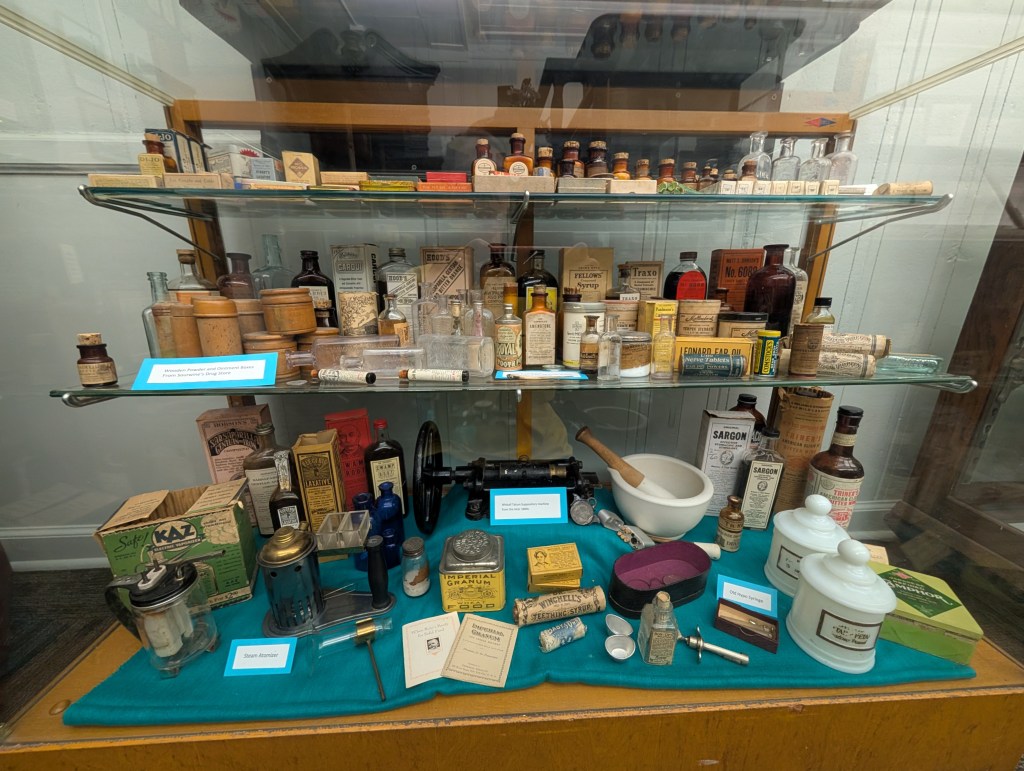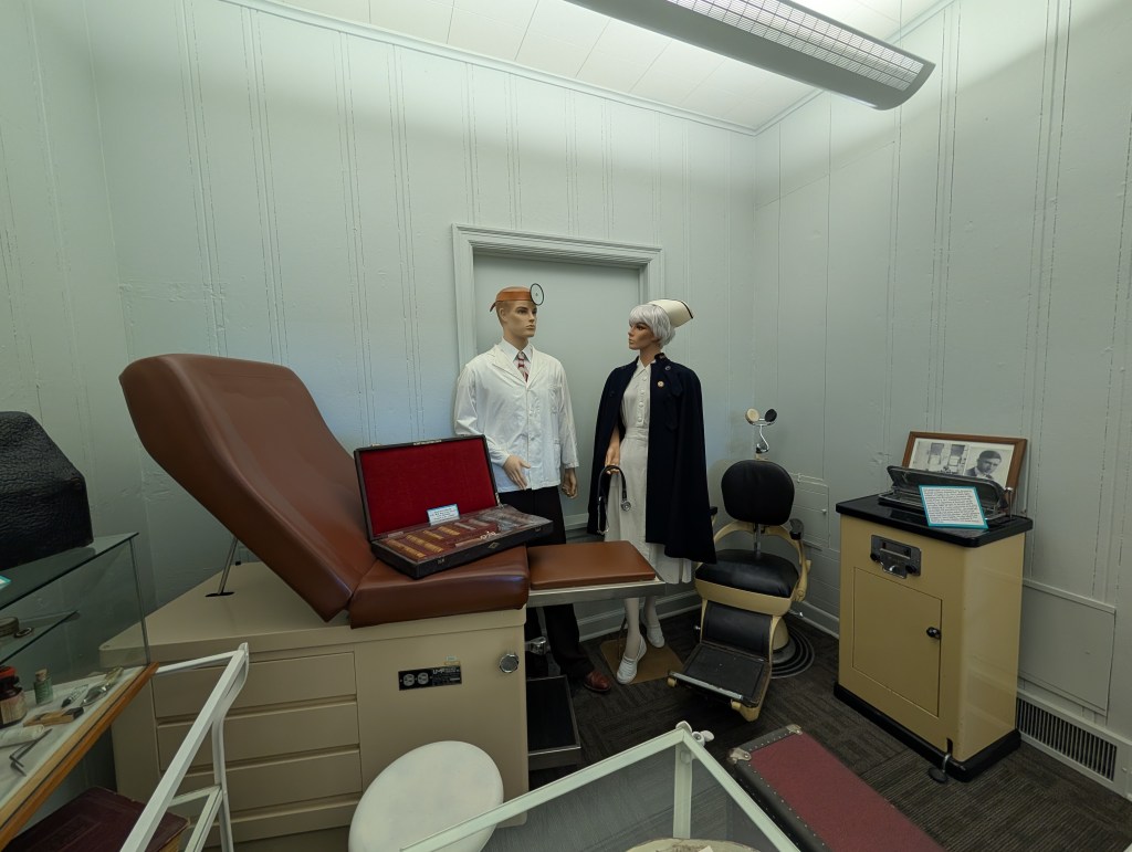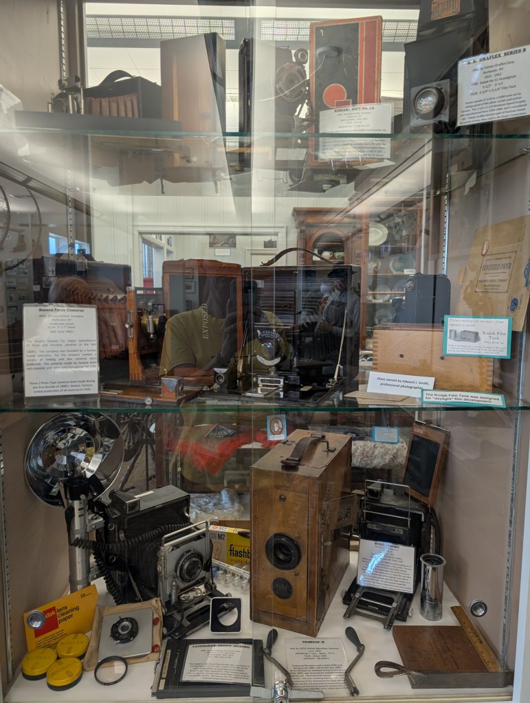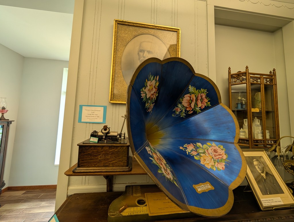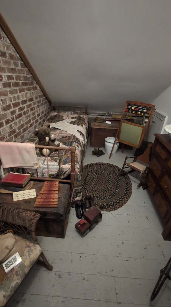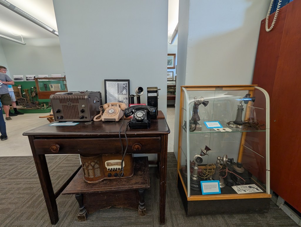 There’s also a collection of wedding gowns from the 1800-1900’s. We found a collection of old telephones, too. I started to feel pretty old since we had one of them in our home when I was a kid! There were Native American artifacts, logging equipment, old musical instruments, and a camera collection.