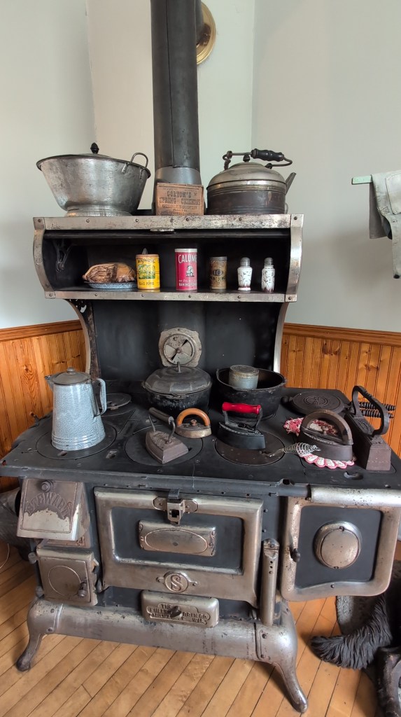 We made our way down to the first floor. I was floored! There’s a reason the Sand Point Lighthouse is on the National Register of Historic Places and is a Michigan Historic Site! It is absolutely amazing! There is an area dedicated to the history of the lighthouse and keepers, but the living room and kitchen are set up so authentically that it feels like you’re taking a step back in time. I absolutely loved the old stove and irons!