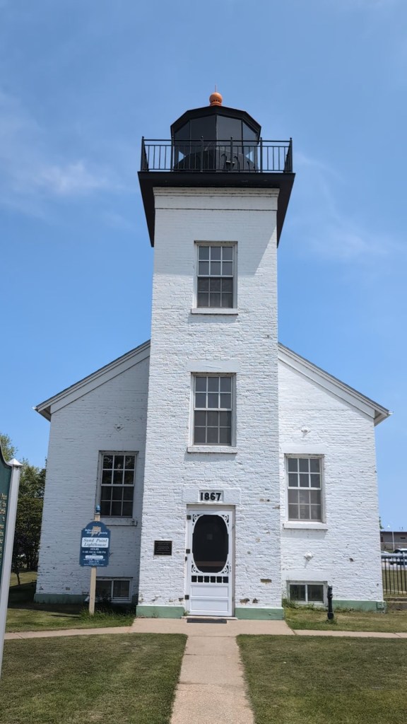We didn’t have time to spend the night, but we made the most of our day of sightseeing in Escanaba. Last year we visited the Sand Point Lighthouse, but due to the time of year we went, it wasn’t open for tours. Joe and I decided to swing through town and head to the lighthouse to see if it was open. I was beyond excited that it was!