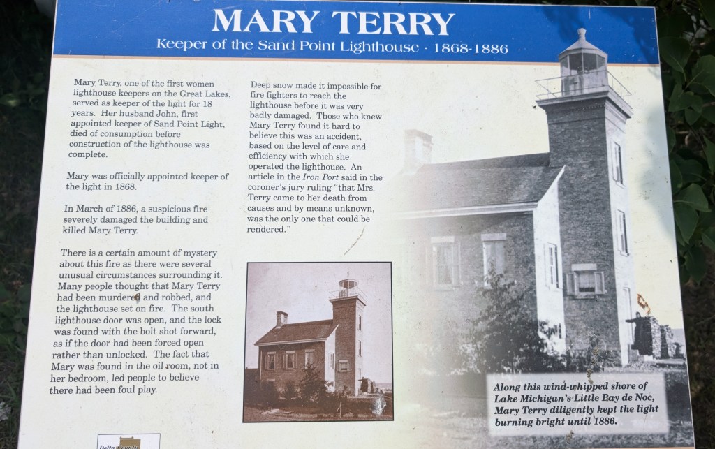 This is where we learned more about the fire in 1886, and the suspicious death of Mary Terry. The first lighthouse keeper, John Terry, died before the lighthouse opened. His widow, Mary Terry, stayed on as lighthouse keeper and remained there until her suspicious death in 1886.