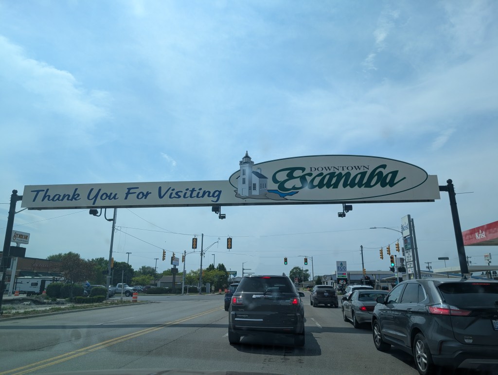 After leaving St. Ignace, our travels took us through the beautiful Upper Peninsula of Michigan. We loved driving along US-2 and watching the waves crash on the shore of Lake Michigan as we made our way to Escanaba, Michigan.