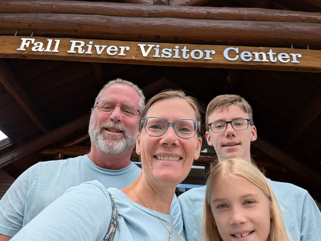 We started out at the Fall River Visitor Center. Juliana and I are on a quest to see how many Junior Ranger badges we can earn at the national parks this year. Luke doesn’t enjoy the challenge anymore, so Juliana and I have teamed up to earn them. There are different books to complete at each national park, each with their own challenges and requirements.