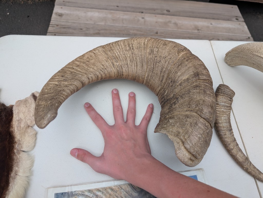 After we found some fun treasures in the gift shop, we met with the ranger and talked about the areas we wanted to be sure to see. On our way through the park was a ranger station. The ranger was showing the kiddos some ginormous antlers! They were so cool!