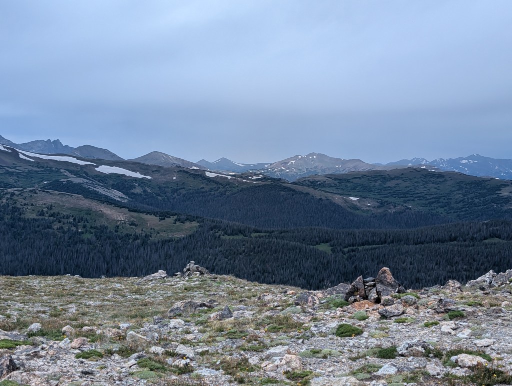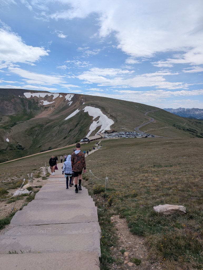 We drove to the Alpine Visitor Center to hike up another mountain. Spoiler alert, it was totally worth it!!! As we made our way to the top of the mountain, we stopped to enjoy the beautiful flowers and fauna that grew in this inhospitable terrain. Anything that lives at this elevation needs to be very resilient. The winds are also no joke. Fun fact: The Alpine Visitor Center is the highest elevation visitor center in the national parks system at 11,796 ft. above sea level.