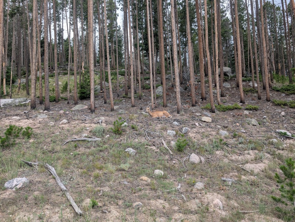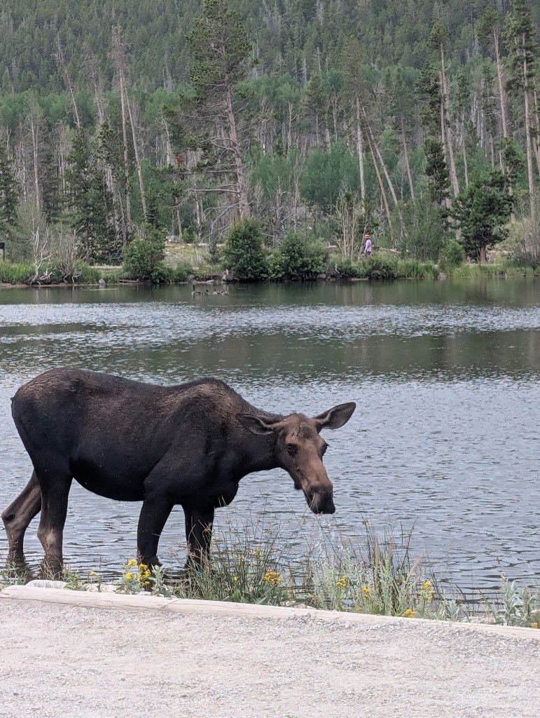 - We saw elk along the Trail Ridge Road, moose at Sprague Lake, and mule deer along Bear Lake Road. Obviously they move around, so check with the Ranger to see where they may have been spotted during your visit.