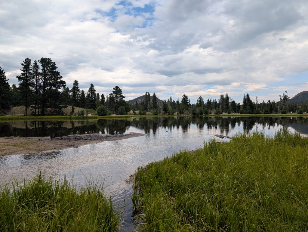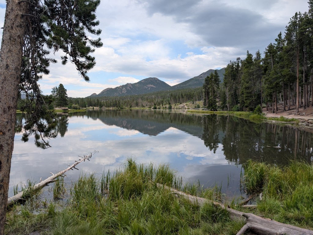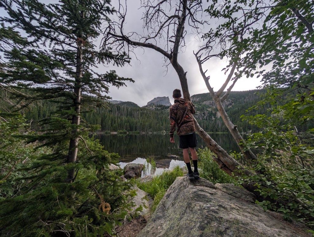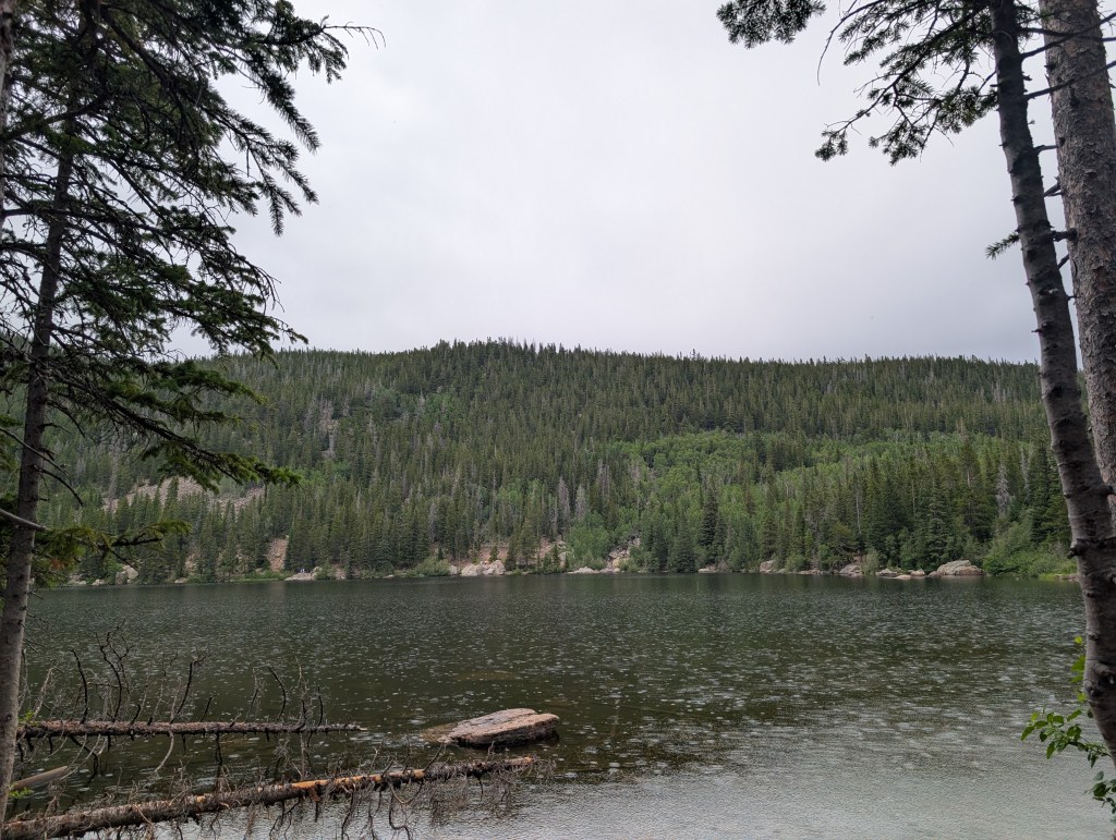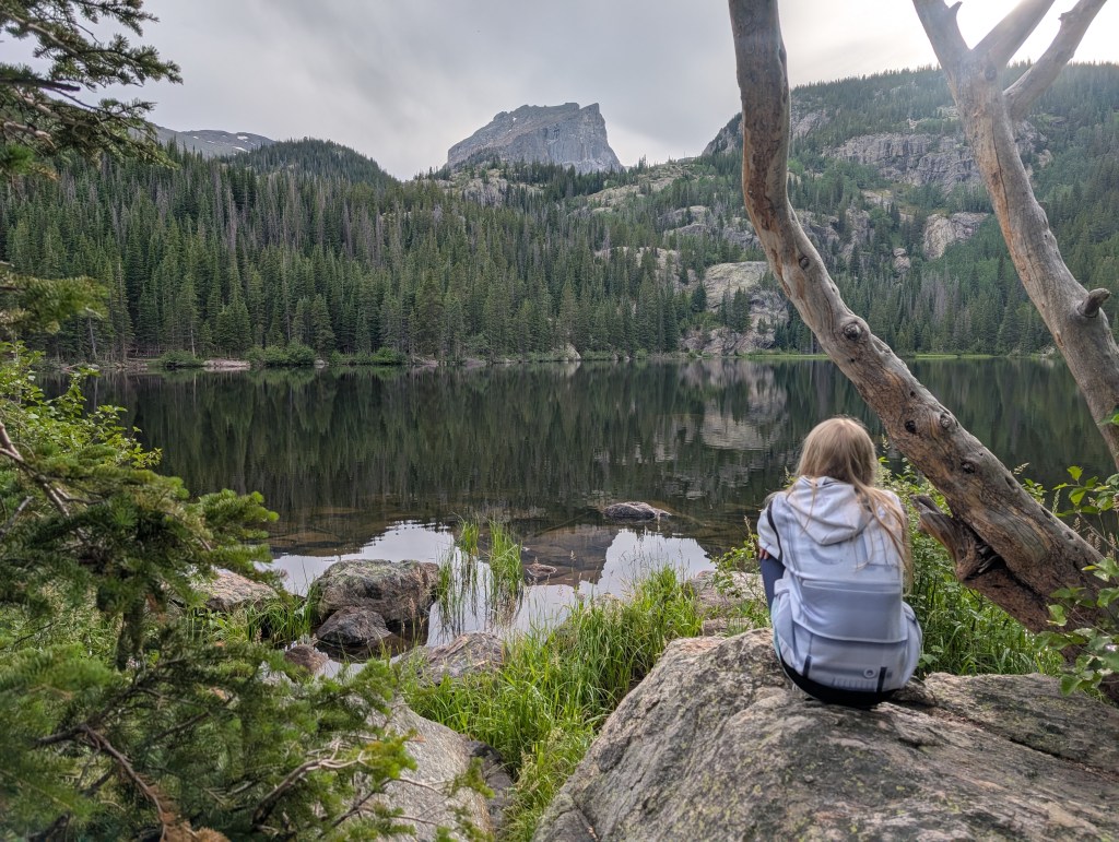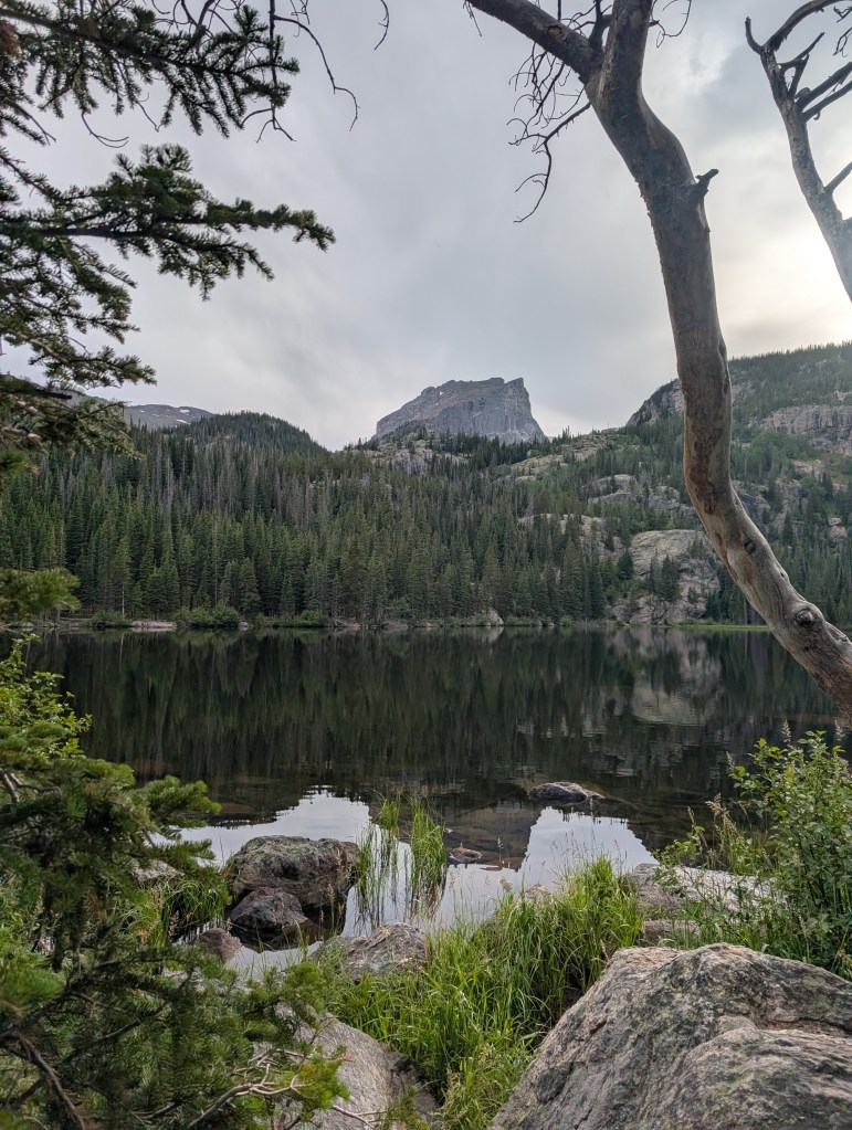After enjoying the moose moment, we drove to the Bear Lake Nature Trail. If the passes are available, I highly recommend getting the dual pass that includes Bear Lake. It was amazing! It was a bit drizzly when we went, but that didn’t take away from the beauty of the area.
