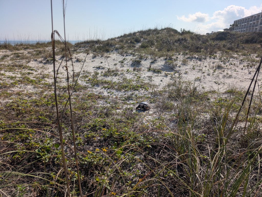 We were greeted by this very friendly gopher tortoise! It was fun to watch him cruise alongside the boardwalk to the beach. He didn’t seem content to stay there, though. He had places to be and he wasn’t going to be stopped by us watching him. He came out and walked right on the boardwalk until he decided to pop on over to visit a friend on the other side. You can find a short YouTube video of our tortoise friend here: 🐢 Gopher Tortoise on the Sand Dune