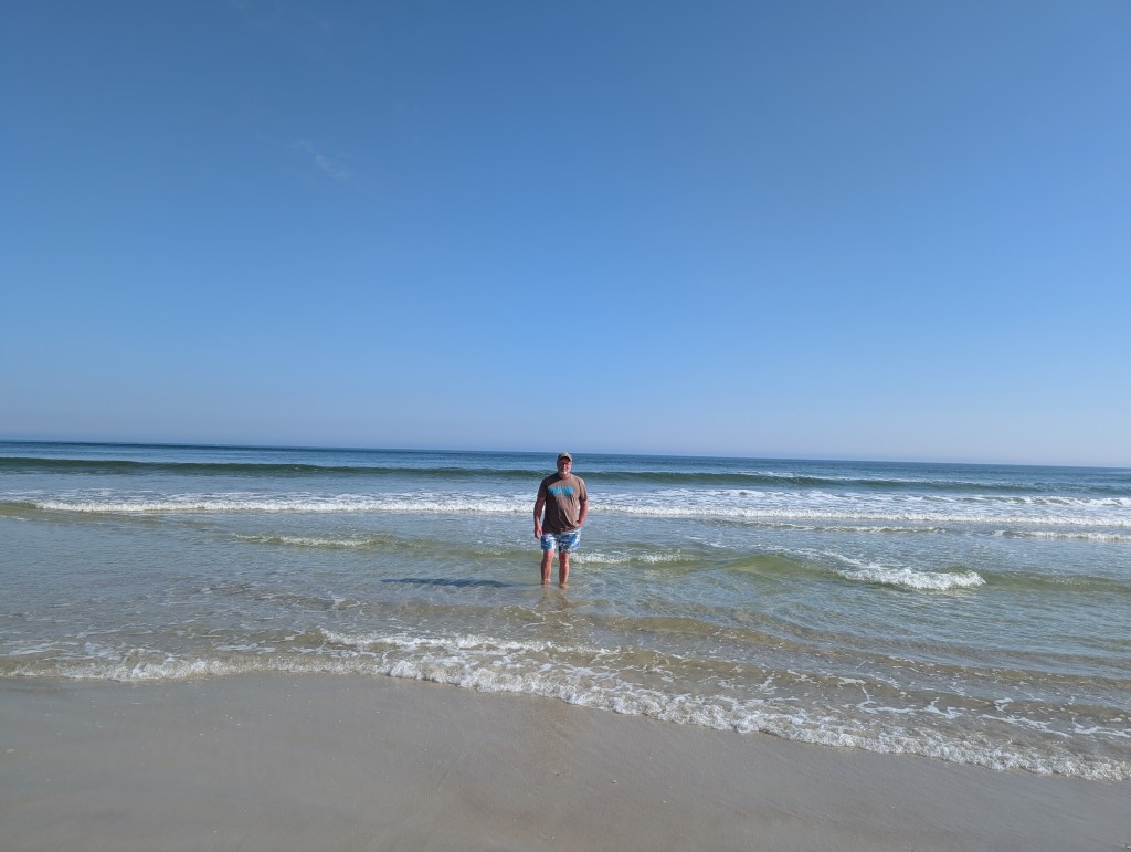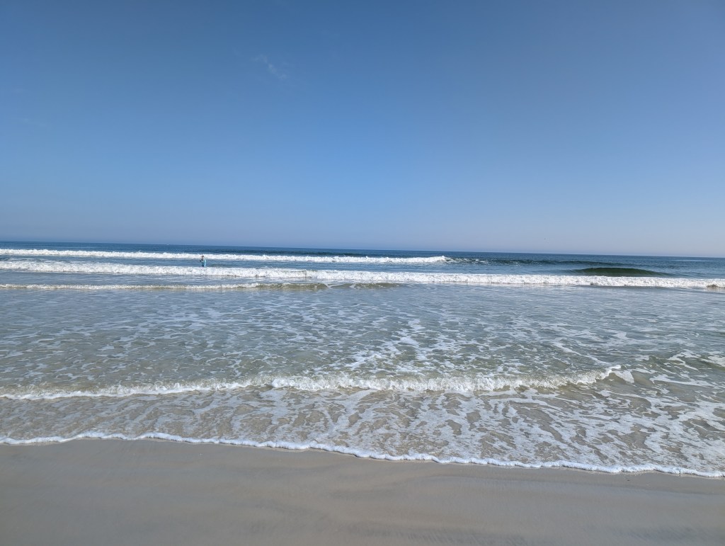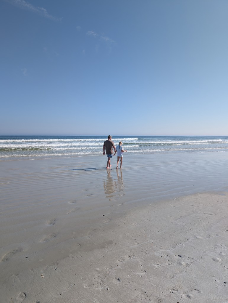 When we got to the sand, we took off our shoes and enjoyed walking in the water. The water had a bit of a chill to it, but the sun shining down on us kept us warm. We always enjoy walking in the water and getting some steps in. We walked and enjoyed the water for hours. It was so soothing and peaceful–definitely some perfect salt-water therapy.