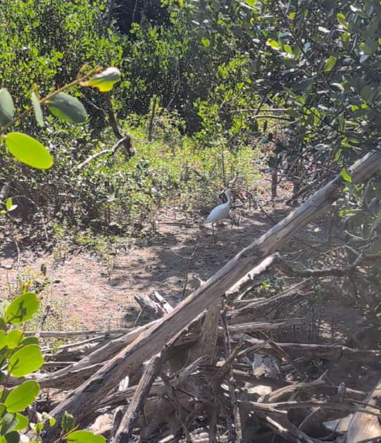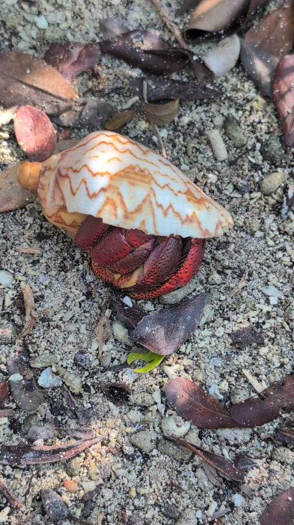 We did see a few spiders, but so far we didn’t spot the golden orb weaver. It was nice to see a White Ibis so close to us on the trail and to watch the hermit crabs scurrying across our paths.
