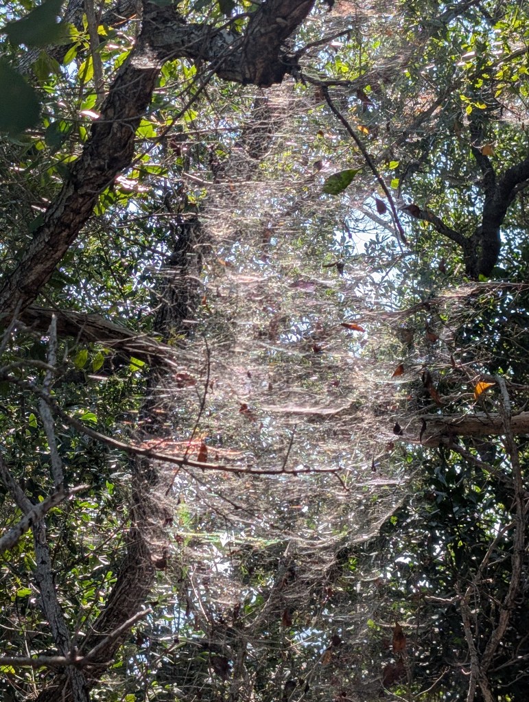 The Coastal Berm habitat took us along the Atlantic Ocean where new types of plants emerged. There were a few herons and egrets wading in the water near the shore. We found a few more spiders, but still no luck finding the golden orb weaver. Some of the spiders in the area had their webs stretching from the ground to over 6 ft. high. It was amazing! I do want to mention that we had to actively look for the spiders and webs we found. They were not blocking the path, and we had an unobstructed trail while we were hiking.