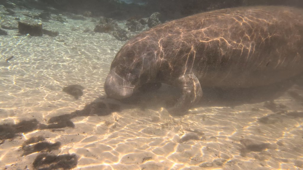 Manatees are some of the most amazing mammals. They’re sweet, peaceful, and graceful. We always like to go see them when the water is cold and they head for the warmer water of the springs in Florida.