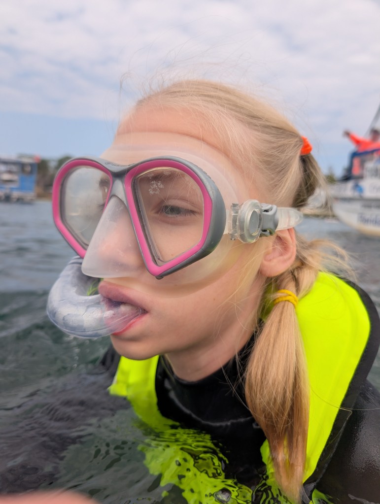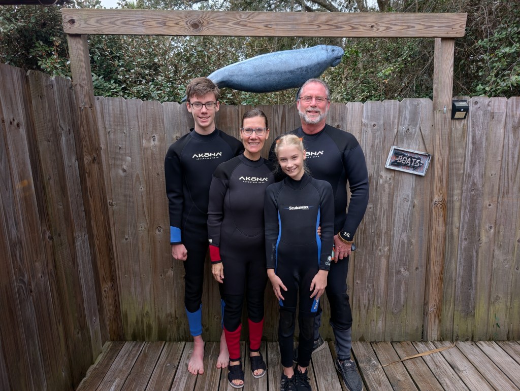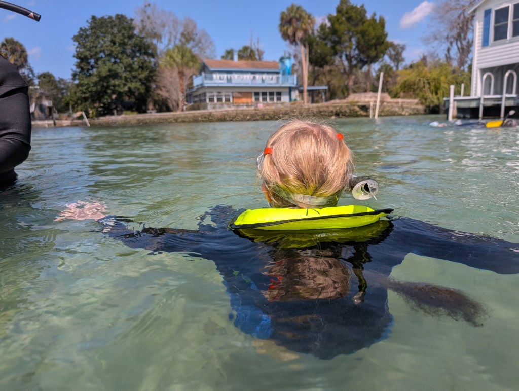 We didn’t see any manatees at the first site, but it was fun to swim around and look underwater with the mask while we got used to being in the water. We had a great time on the boat ride and laughing with some new friends, too.