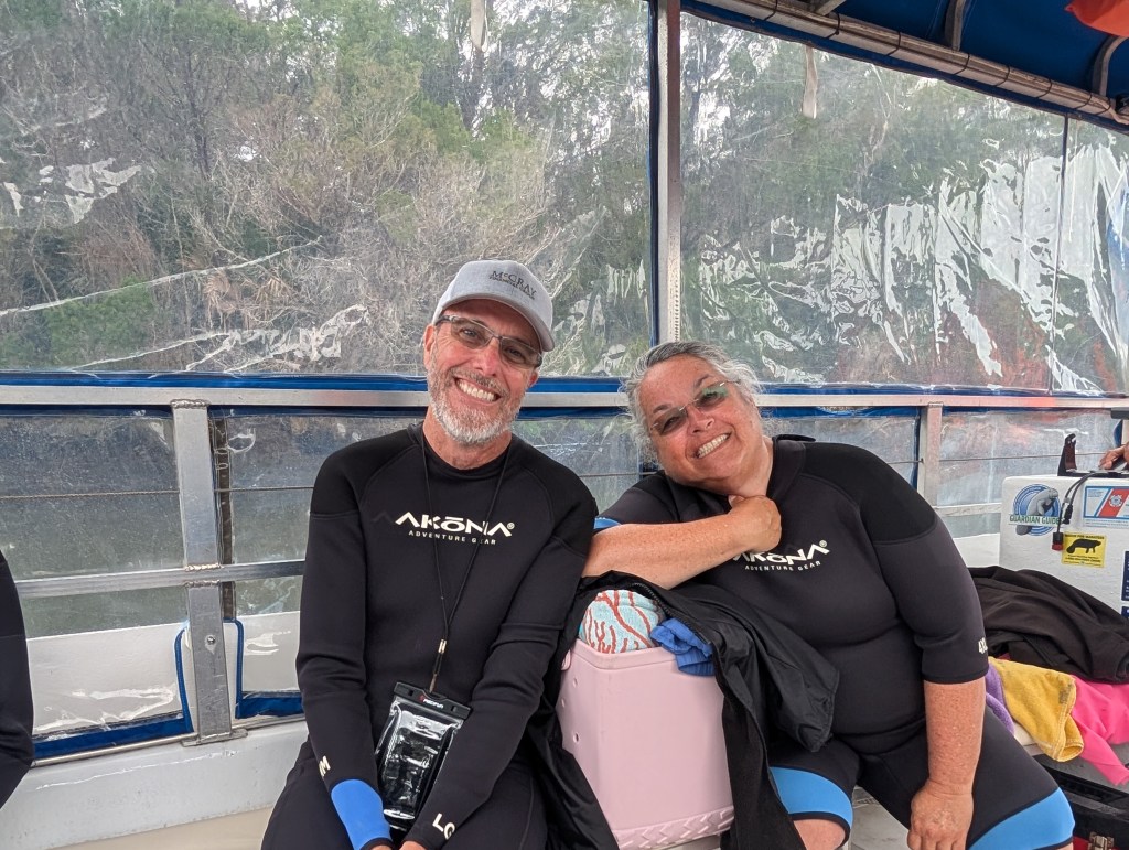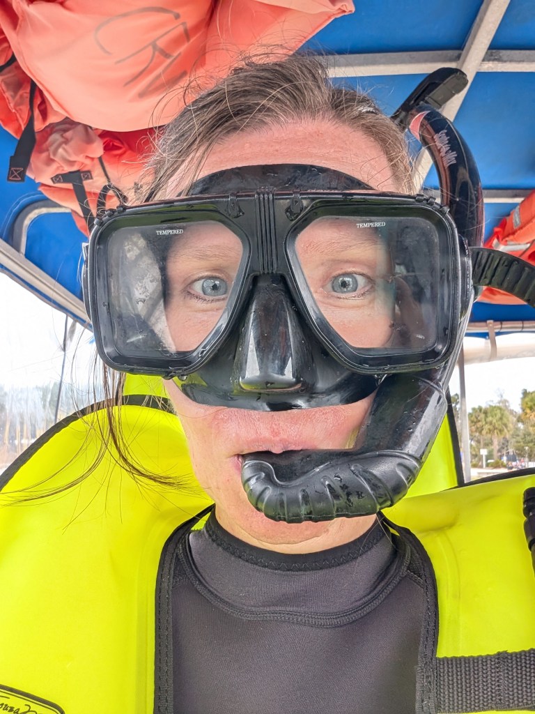 We arrived half an hour before our boat departed, and they got us sized up for our wetsuits. We all watched a video on how to make sure the manatees are safe while we swim near them. I was so grateful to Mike and the crew for taking the time to educate everyone and protect these beautiful creatures.