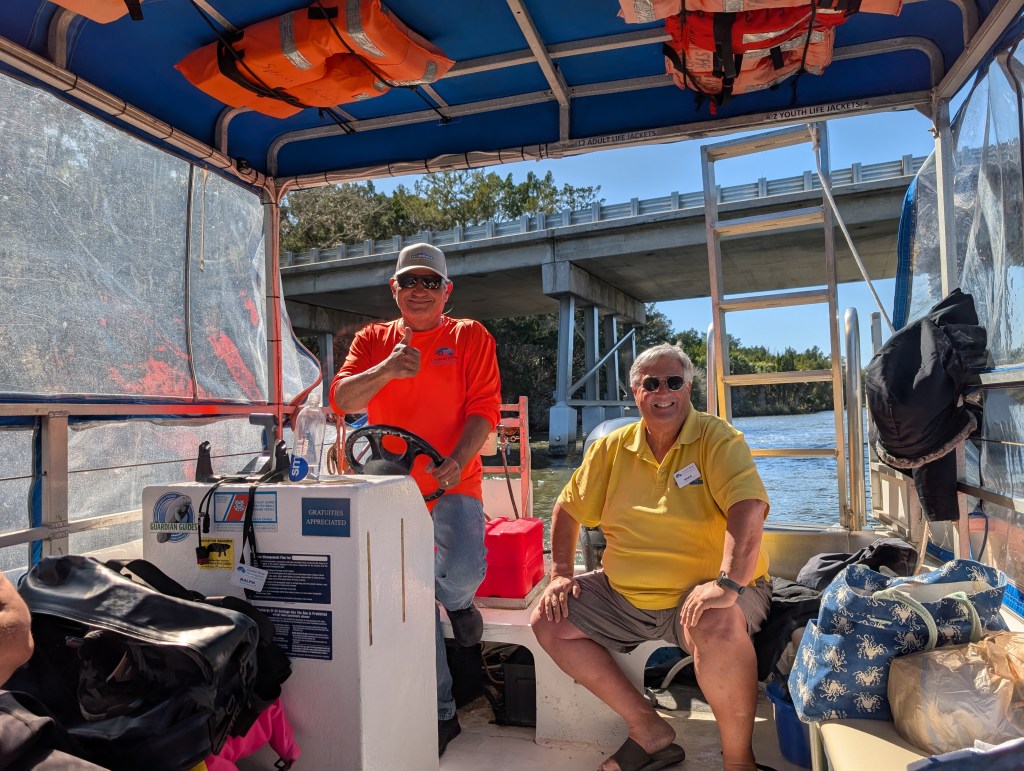 When it was time to head back, we really enjoyed the natural beauty of the area. We could see why it’s known as the Nature Coast Region. There were alligators, herons, turtles, anhingas, and other beautiful birds to watch. We loved listening to Captain Juan as told us about the shell mounds at the Crystal River Archeological State Park and how they were related to the other shell mounds across the state. We were fascinated by the history and decided we need to take a trip to the state park to see them. Stay tuned for more about that in the near future.