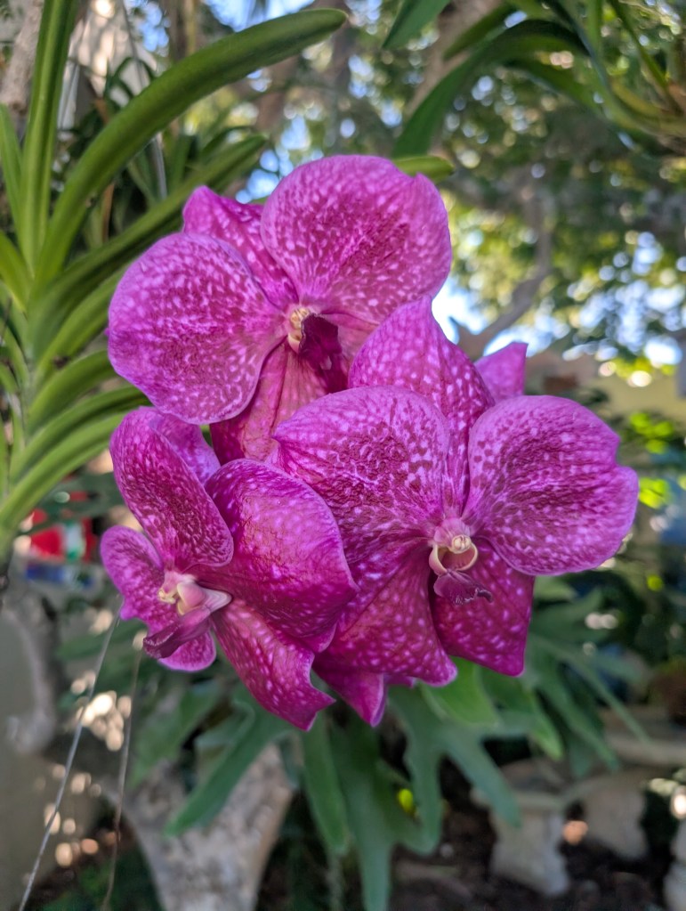 When we first arrived, we were amazed at the beautiful tropical flowers blooming. Multiple varieties of orchids caught our eye, each one as beautiful as the last. We were captivated by the gorgeous colors and unique shapes of each one.