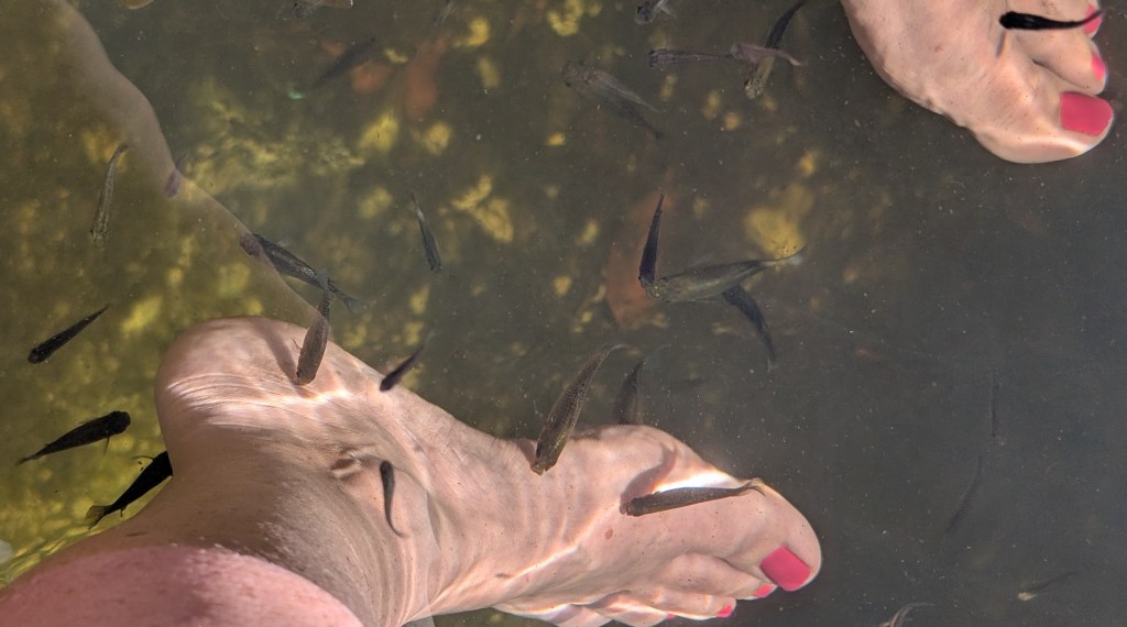 We’re always up for interesting and exciting things, so we decided to try it. There were some squeals from other people at the tidal pool, and we didn’t understand why until we felt the pedicure process. It tickled and surprised us as the gambusia fish fed on our feet. It was a unique experience to say the least! The pedicure didn’t hurt at all and after we were done, our feet really did feel quite refreshed. It was so much fun! We will definitely visit for a fish pedicure again!