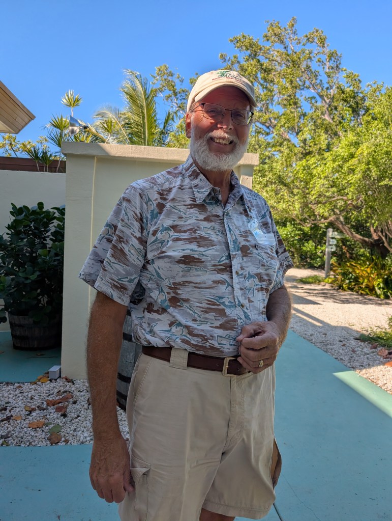 The path led to a road, the road led to the Crane House. It was a really neat house with the main living quarters on the second floor so the wind could act as a natural air cooling system. It was interesting to learn about Mary and Francis Crane and their desire to protect and enhance the hammock. We also met Art (photo below) who graciously allowed us to join his group and tour the home.